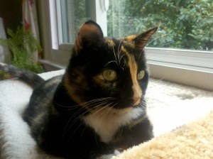Then she said, “One of my petsitters rescues cats and she has a new one available. I replied, “That’s great, but I’ve decided that I want a tortoise shell after seeing some young ones around the lake on my walk”. There’s a woman with 12 cats and some are tortoise shell or tortis, but she won’t part with any of them.